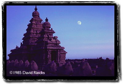 This shore temple at Mahabalipuram in Tamil Nadu was built in the late 7th century by stone masons using individual cut stones and represents the final phase of Pallava art.