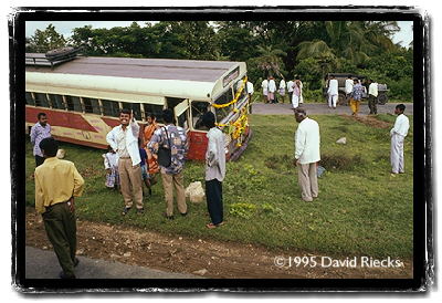 Even their bus losing control doesn't seem to dampen the spirits of this gentleman on his way to Mysore, Karnataka for the Dussehra festival