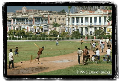 Teenager's play a game of cricket in a municipal garden in Mysore during the Dussehra festival holiday season.