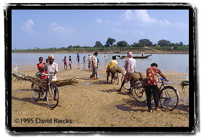 Unloading from the ferry boat over the Damodar river, near the city of Burdwan, West Bengal